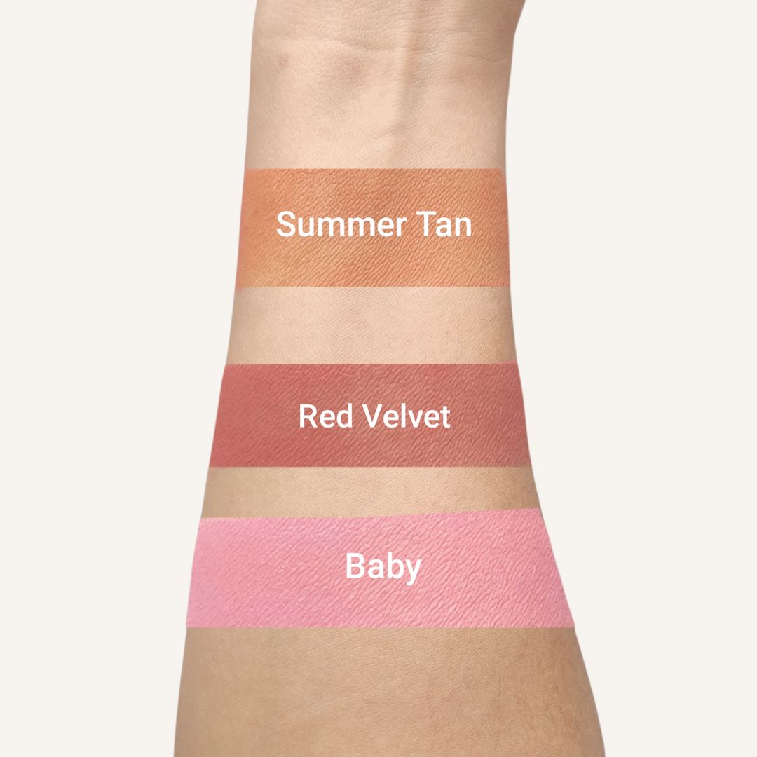 Nuestro rubor está hecho a base de ingredientes naturales como remolacha, cúrcuma, achiote y cacao, que no solo te dan un tono vibrante y saludable, sino que también cuidan tu piel.